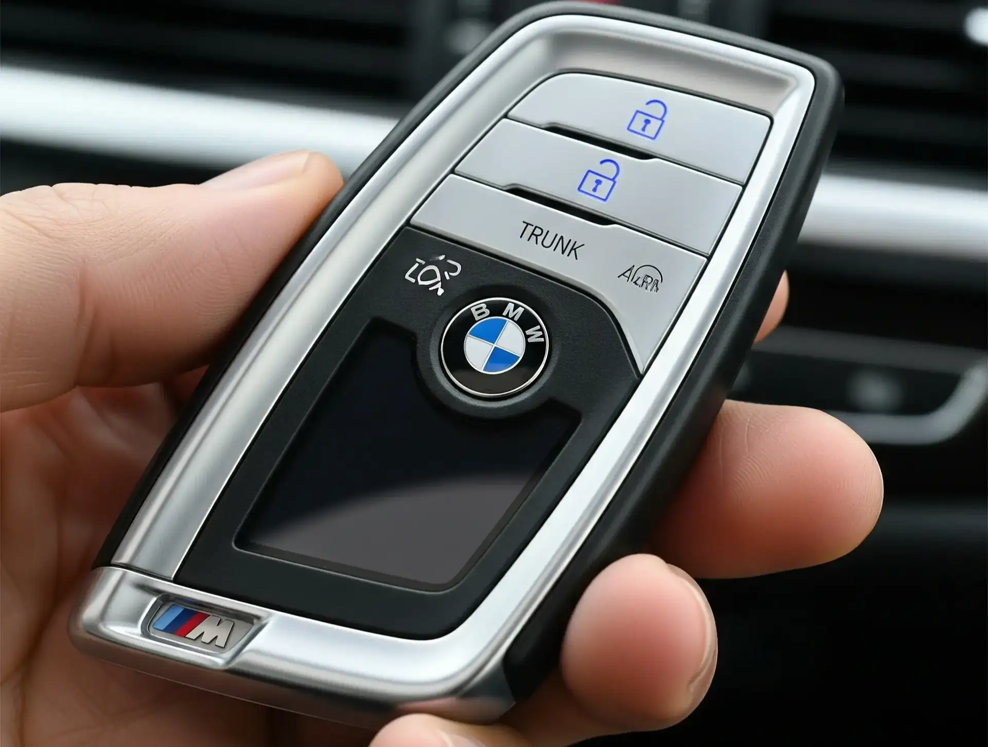 - Standard BMW key fob: Common on older models, includes keyless entry and sometimes trunk release.