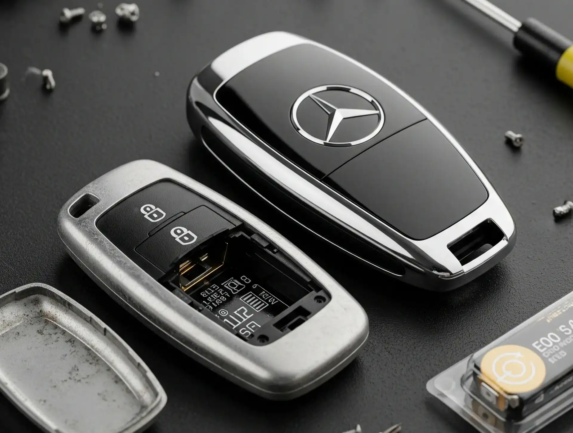 Most Mercedes car keys use a small CR2025 or CR2032 coin cell battery. Replacing it takes just a few steps: